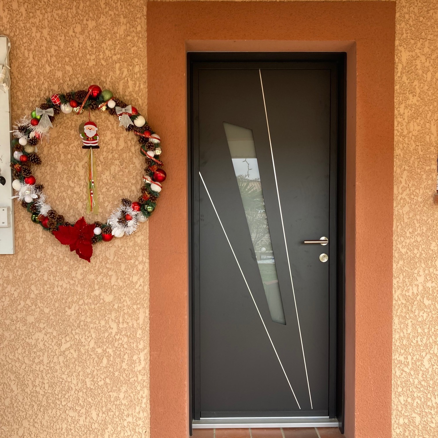 Le client a également opté pour une porte d’entrée aluminium monobloc K LINE, un modèle particulièrement prisé à Toulouse :