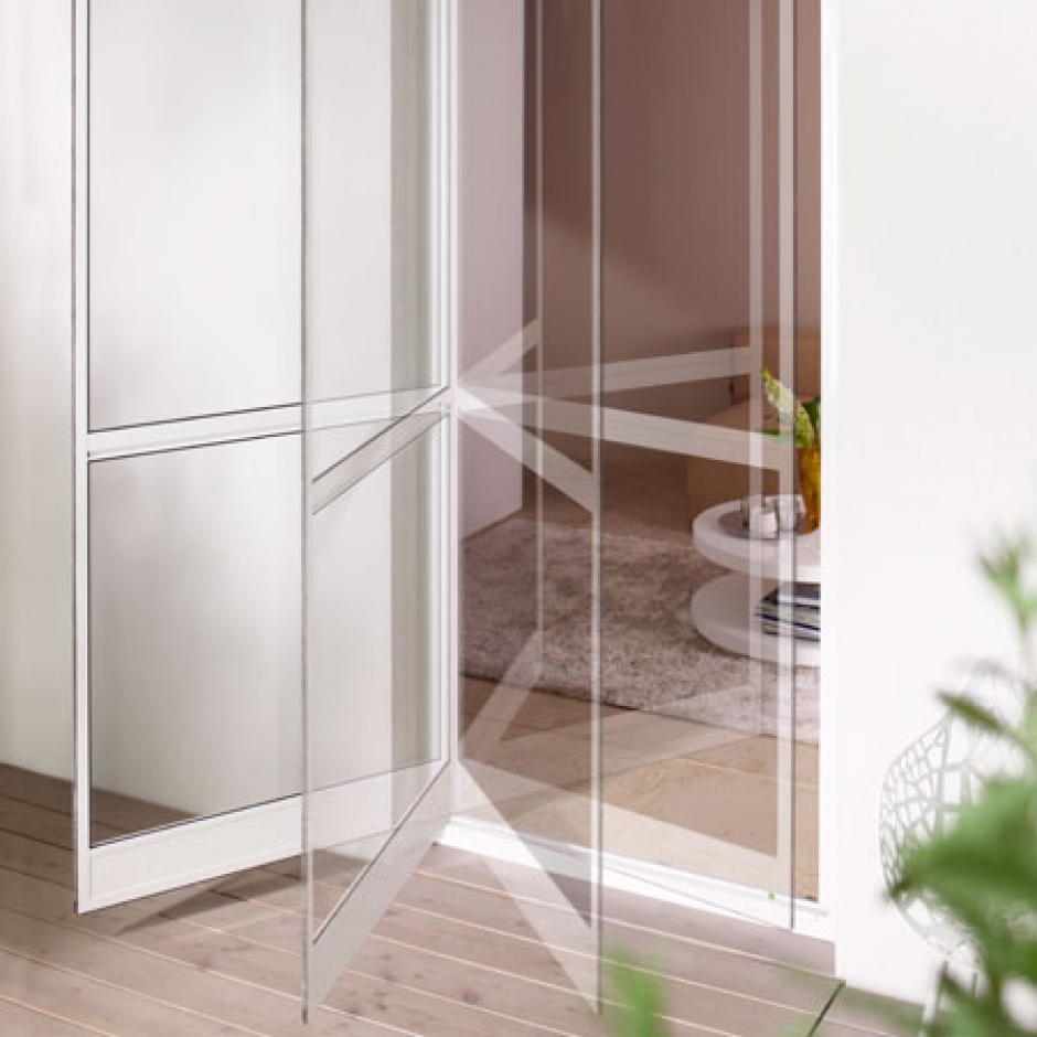 La moustiquaire battante pour porte, s'ouvre vers l'extérieur avec aisance et peut être complétée d'un système de ferme-porte automatique.