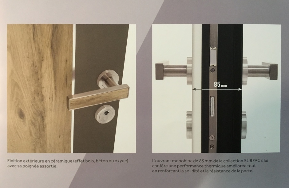 *Son ouvrant de 85 mm d'épaisseur lui confère une performance thermique améliorée, jusqu'à 25% pour les modèles pleins (Ud 0.82 W/m².K), tout en renforçant la solidité et la résistance de la porte.